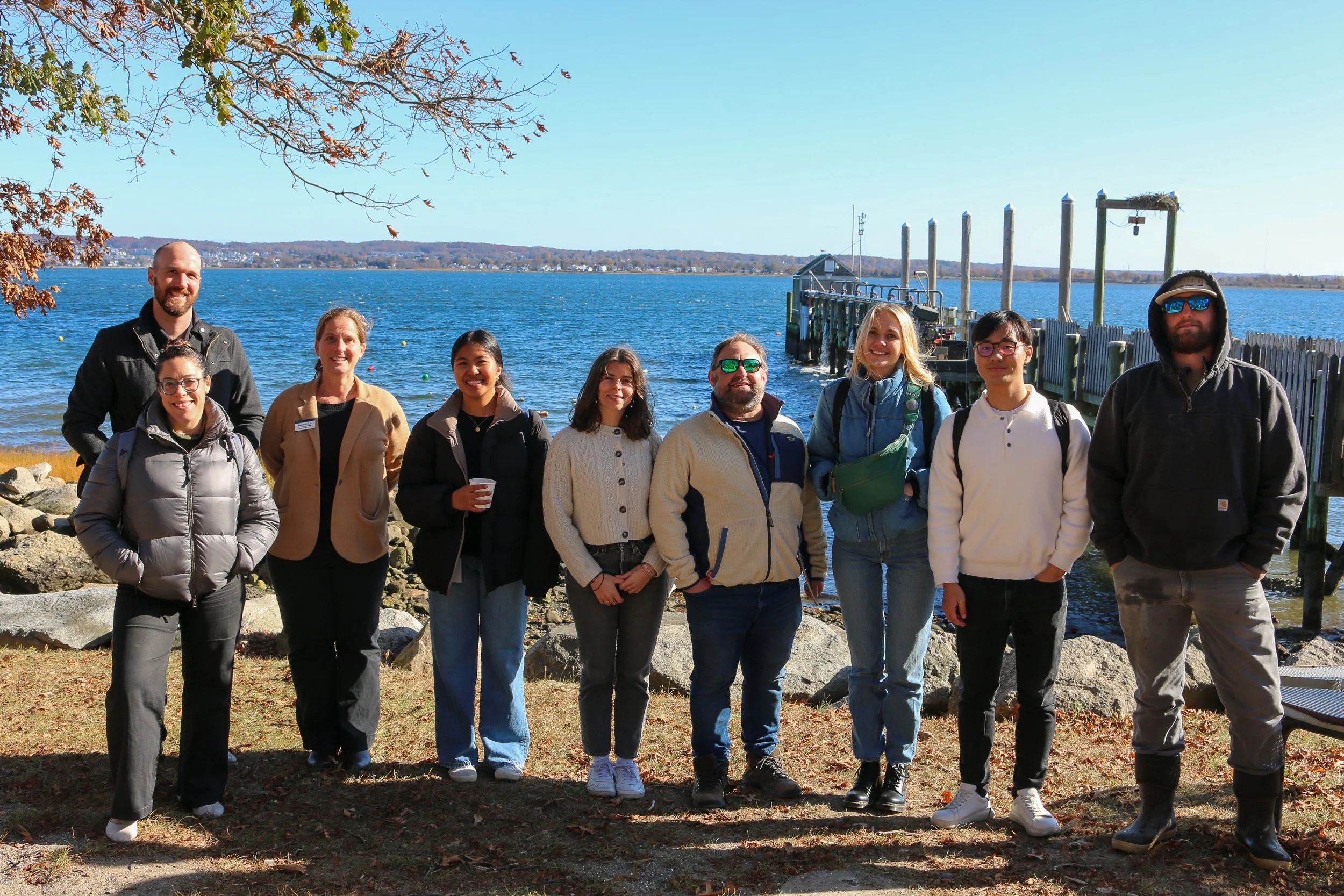 Our journey continued Thursday. We kicked off the day with Koty Sharp at Roger Williams University, where the cohort learned about the resources at the Center for Economic and Environmental Development (CEED). CEED houses the Shellfish Hatchery and Farm, Aquaculture and Aquarium Science Wet Lab, Temperate Corals & Microbial Ecology at the Sharp Lab, and Aquatic Diagnostic Laboratory. We were excited to get an inside look at the facilities, including their live animal tanks.