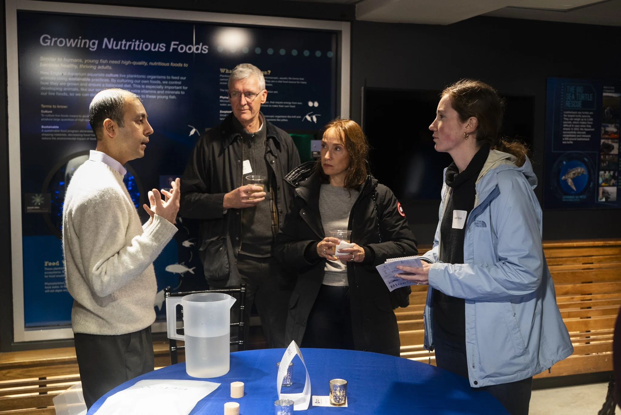 At the end of Cohort IV’s member presentations, everyone was invited into the Aquarium’s main building space for a night of celebration with food, drinks, and networking. The penguin exhibit and the giant ocean tank added the perfect backdrop. Each cohort member had their own table where attendees could meet to chat more about their work. With over 200 individuals in attendance, there were plenty of opportunities for connections and quality conversations. atdepth MRV brought a subsea sensor to the reception and attendees had the pleasure of seeing a live demonstration in the Giant Ocean Tank. Bluemvmt’s CTO Craig Harper ran multiple examples of Bluemvmt's platform on a monitor at his table, showing interested attendees and skeptics alike Blue/AI’s ability to analyze and synthesize ocean data in real-time.