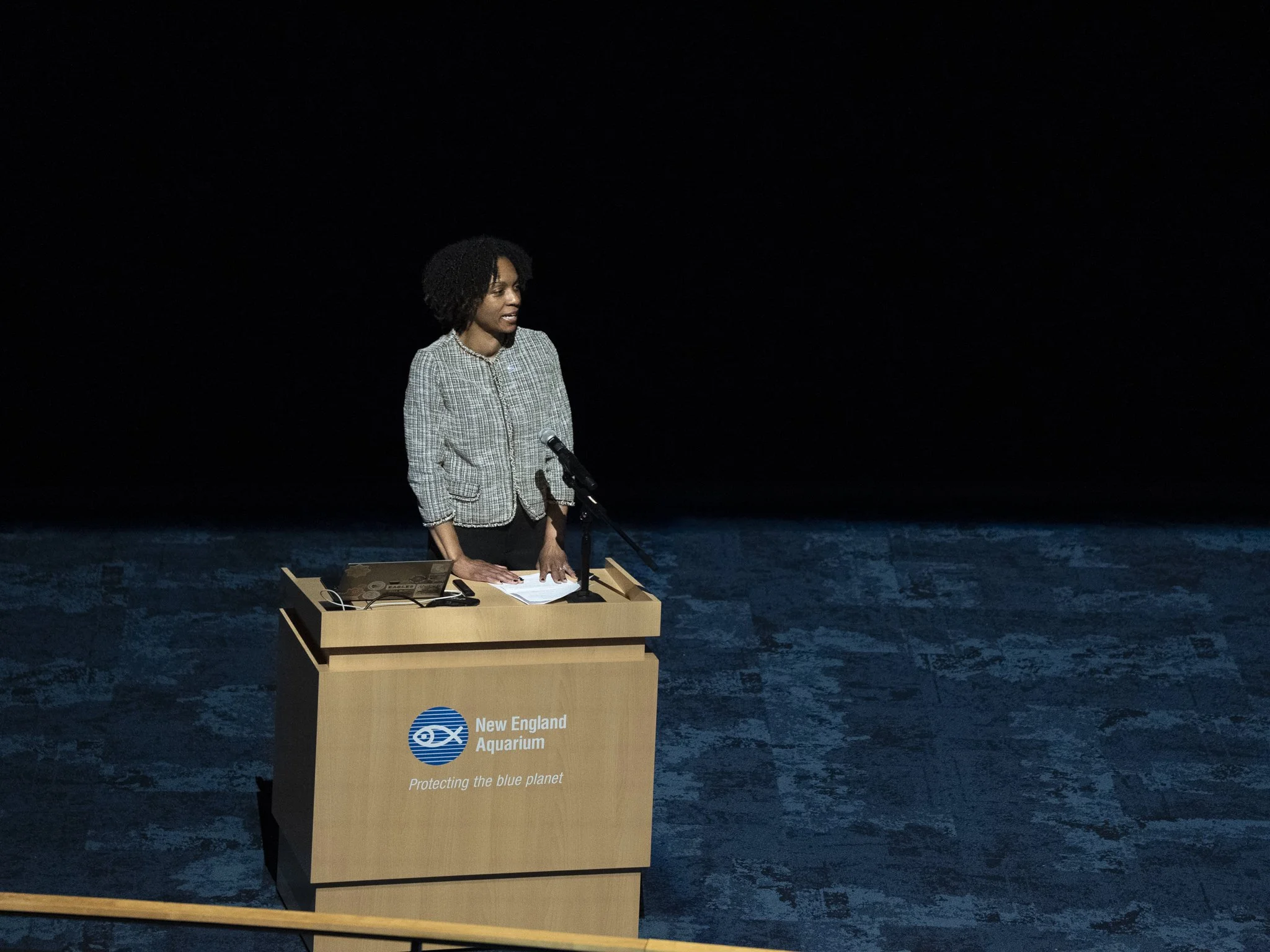 The event began in the Aquarium’s Simons Theatre with opening remarks from Ashley Stolba, the Undersecretary of Economic Foundations at the Executive Office of Economic Development.